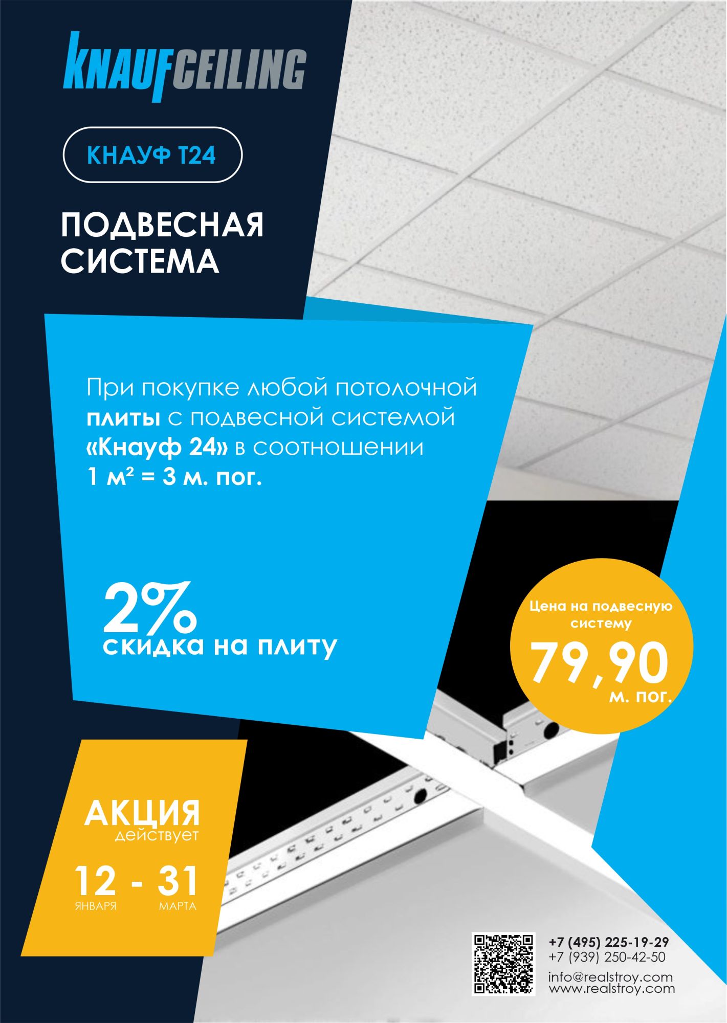 При покупке потолочных плит с ПС "Кнауф 24" в соотношении 1=3, цена на ПС составит 79,90 руб/м.п.,